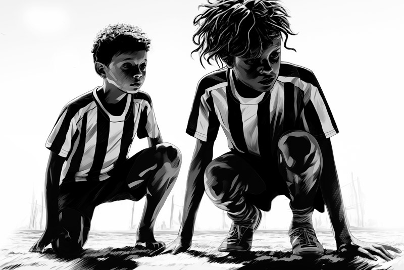 Los jugadores se chocaron las manos con buena voluntad, cada uno tomó sus posiciones y Avelino, ahora en el centro de la cancha y con el balón en los pies, se dirigió al grupo antes de comenzar el partido: –¿Listos? –preguntó, a lo que un–: ¡Sí! –respondieron todos con ansias y entusiasmo. Avelino sonrió, miró a los ojos de Alejandro que se encontraba frente a él, y a la falta de un silbato luego gritó: